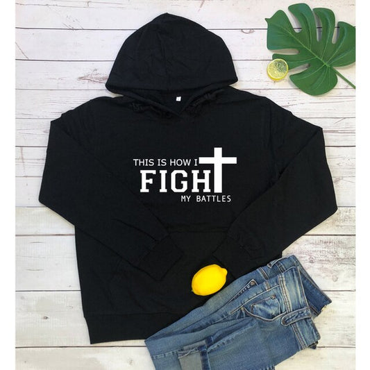 This Is How I Fight My Battles Hoodie Scripture Women Long Sleeve Jesus Christian Hoody Streetwear