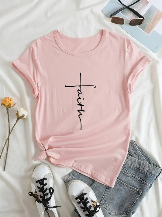 Faith Cross T-Shirt Religion Design Print Women Aesthetic Clothes Devout Believer Tops Basic White Short Sleeve Summer Tee Shirt